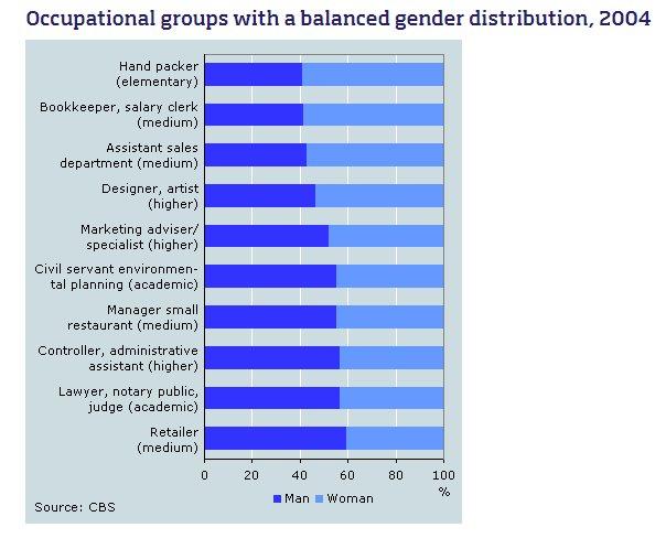 Also, contrary to what you may think, women do tend toward an equal distribution with men as the pay scale goes up: