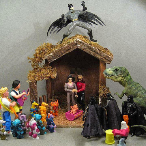Nice creche you have there! I recognize Batman The Dark Knight Angel and Deanna Troi and William Riker as Mary and Joseph.