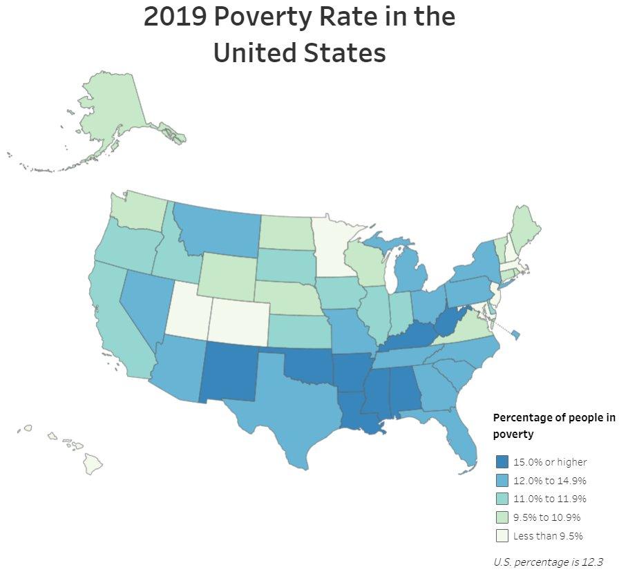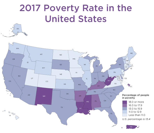 DavisParticipantHere is a map that shows the level of poverty by state. States more likely to support “small government, few social programs, little sympathy for those in a difficult situation, underfunded mental health systems” (basically the Republican party), the more likely there is to be high poverty levels. Of course, the story is always more complex (there are a couple glaring exceptions there), but one need only look at this map to see a general (though obviously not perfect) that many states can both give a shit about those in need and help them and be very prosperous. Seems to be they go hand in hand. Note you will find that in Europe the relationship between the two is far far stronger.